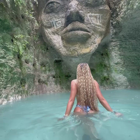 Disfruta la nueva atracción Sacred River, donde podrás nadar junto a imponentes esculturas ancestrales y cascadas naturales.