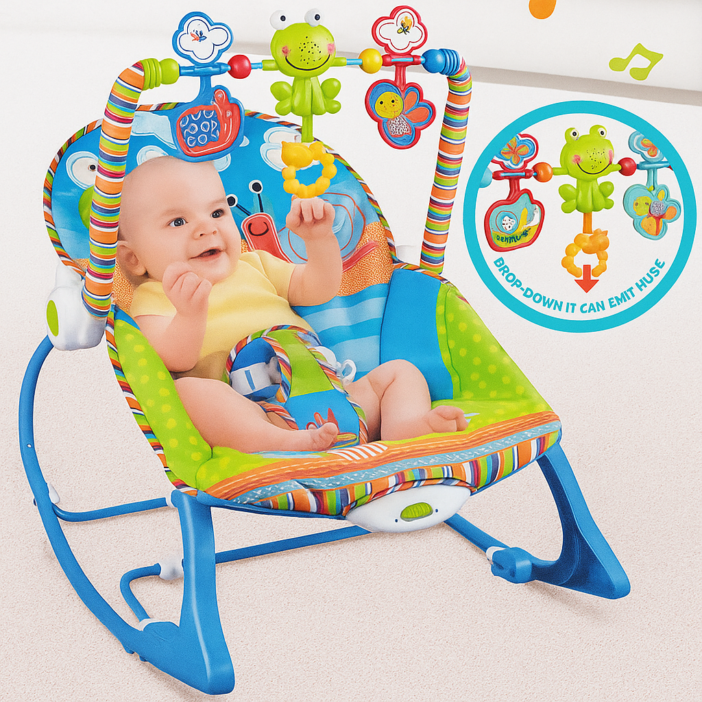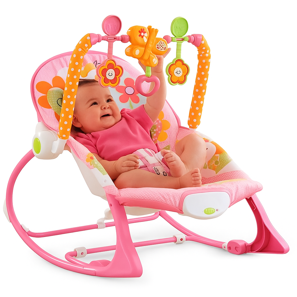 Tu bebé merece lo mejor, y esta hermosa silla mecedora multifuncional está diseñada para acompañar sus primeros meses con confort y alegría.